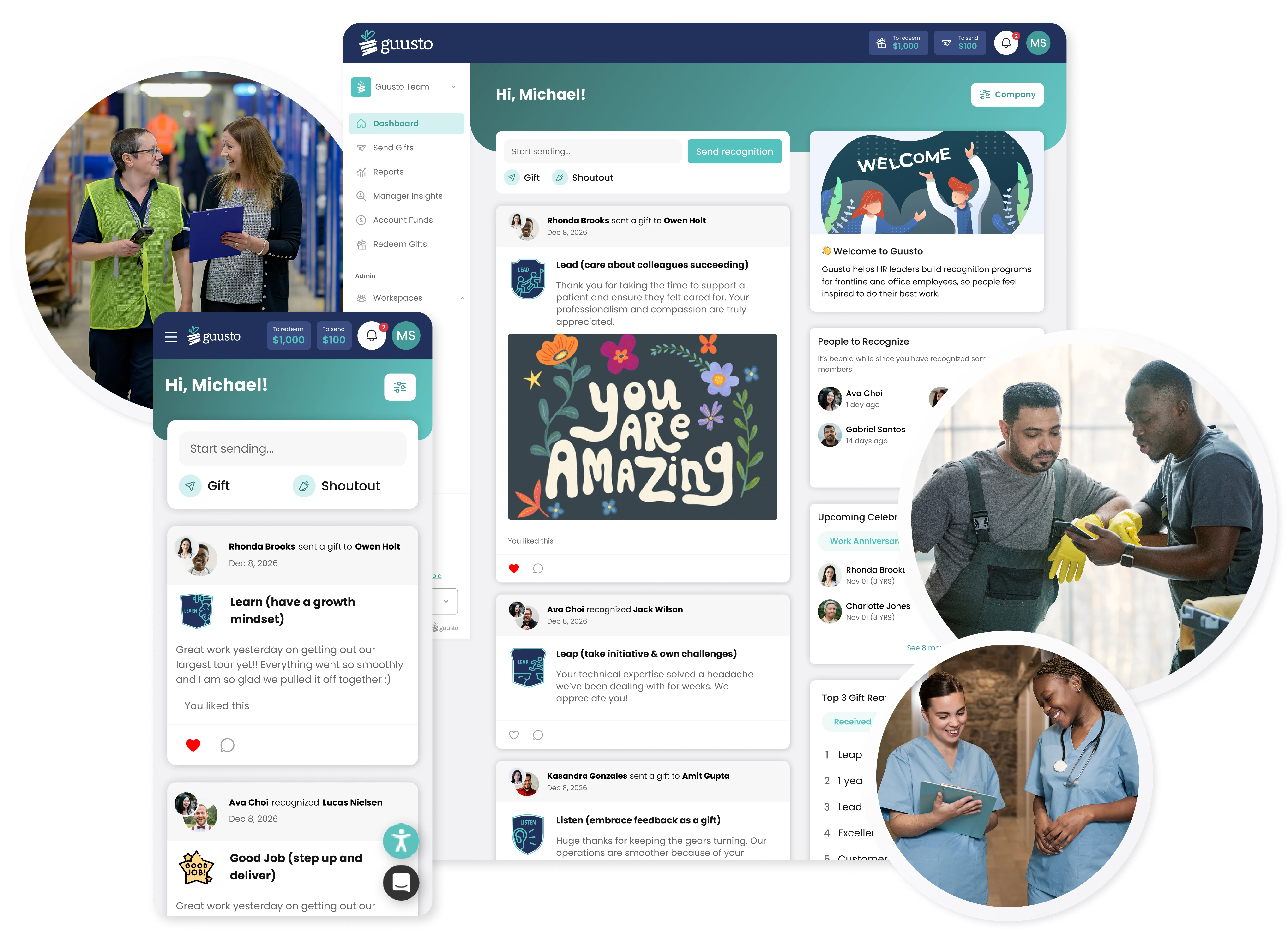 Guusto helps HR and Operations leaders scale recognition programs across office and frontline teams.